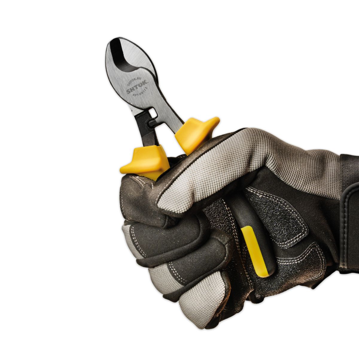 Кабелерез SHTOK 08112 используется в сборочном производстве. Рукоятки из двухкомпонентного пластика с упорами обеспечивают надежность захвата и удержания инструмента во время работы. Возможна резка одножильного и многожильного алюминиевого или медного кабеля.