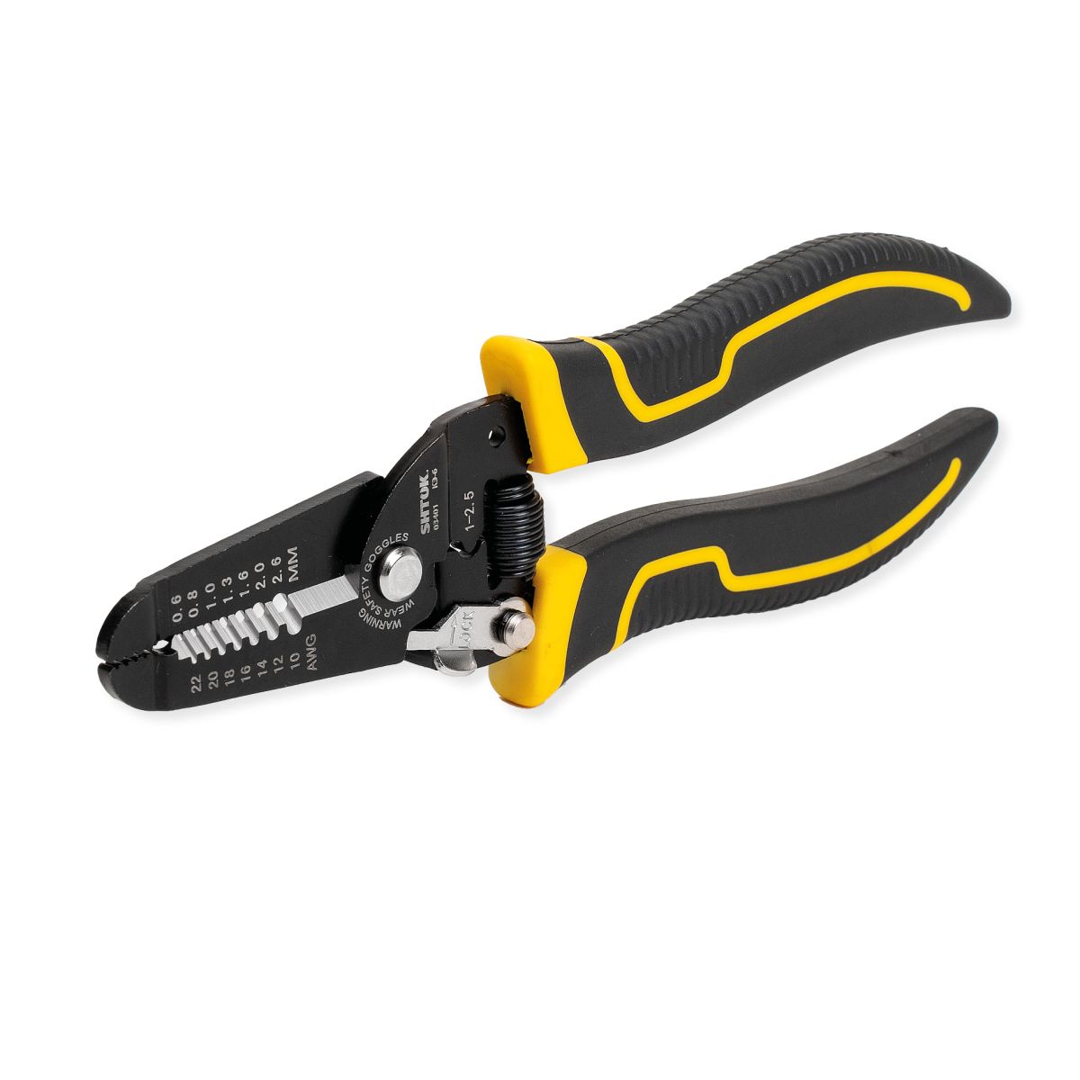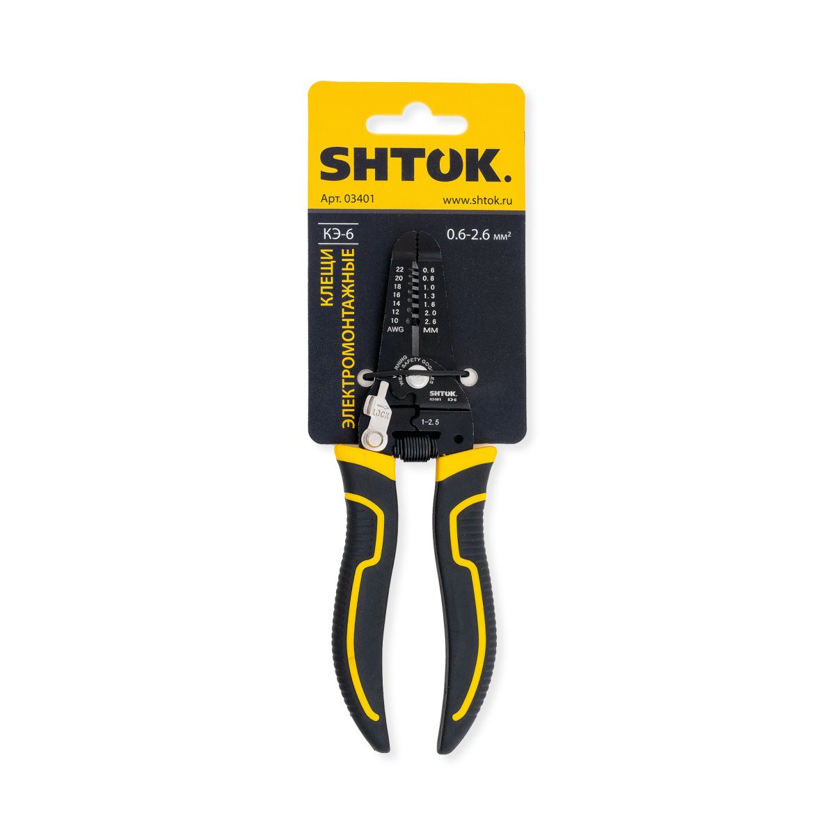 Электромонтажные клещи SHTOK КЭ-6 03401 служат для снятия изоляции с проводов без повреждения жилы, а также для их отрезания. Инструмент обладает губками и высокопрочной стали, стойкой к нагрузкам. Возвратная пружина снижает усилие во время резки кабеля. Благодаря фиксатору ручек, клещи можно компактно и безопасно хранить.