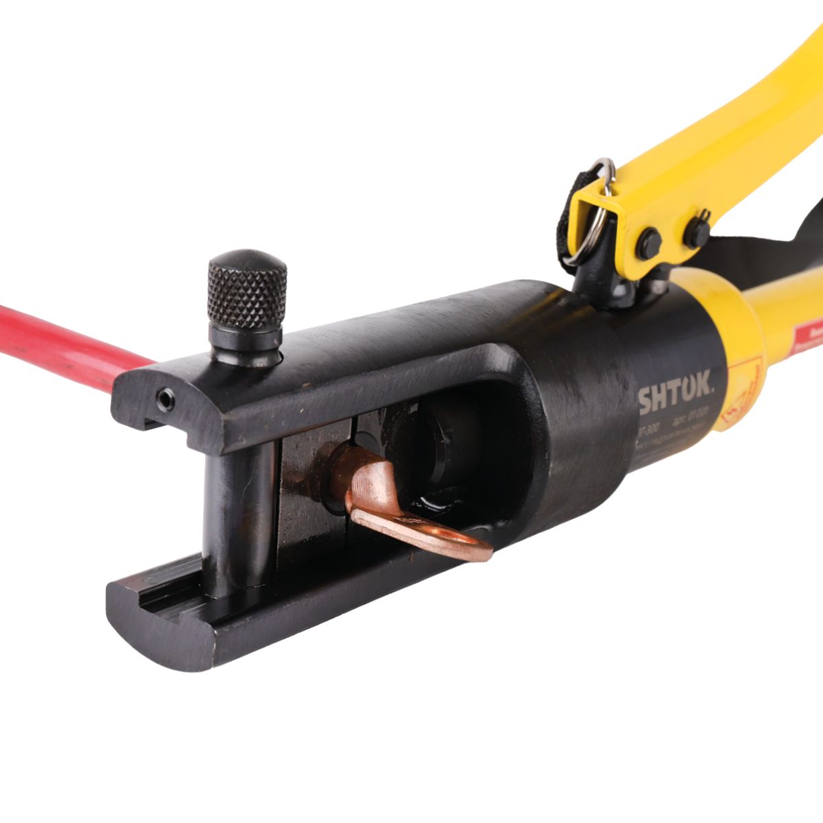 Гидравлический автономный пресс SHTOK ПГ-300К 01002 предназначен для опрессовки медных и алюминиевых наконечников сечением от 10 до 300 мм2.