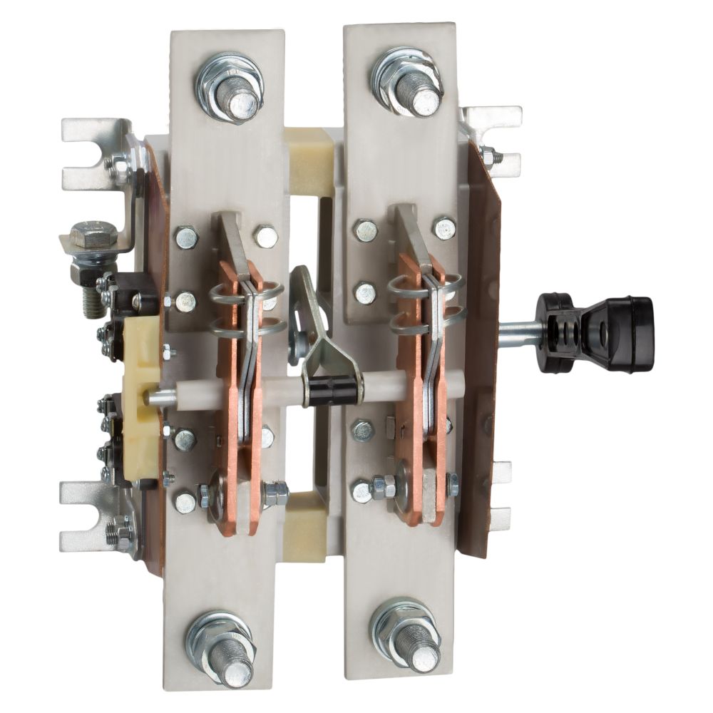 Разъединитель 2 полюсный на номинальный ток 2500 А, где установлена несъемная рукоятка, а механическая износостойкость составляет 4000 циклов.