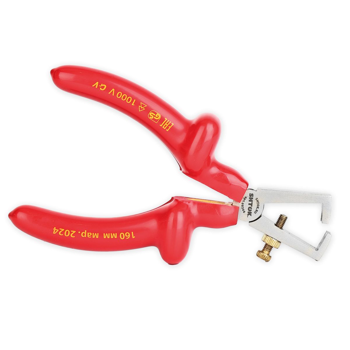 Диэлектрический съемник изоляции SHTOK 1000В 160 мм 08208 применяется для работы под напряжением. Возможно удаление различной изоляции. Удобные ручки со специальными упорами, обеспечивающими надежность захвата инструмента.