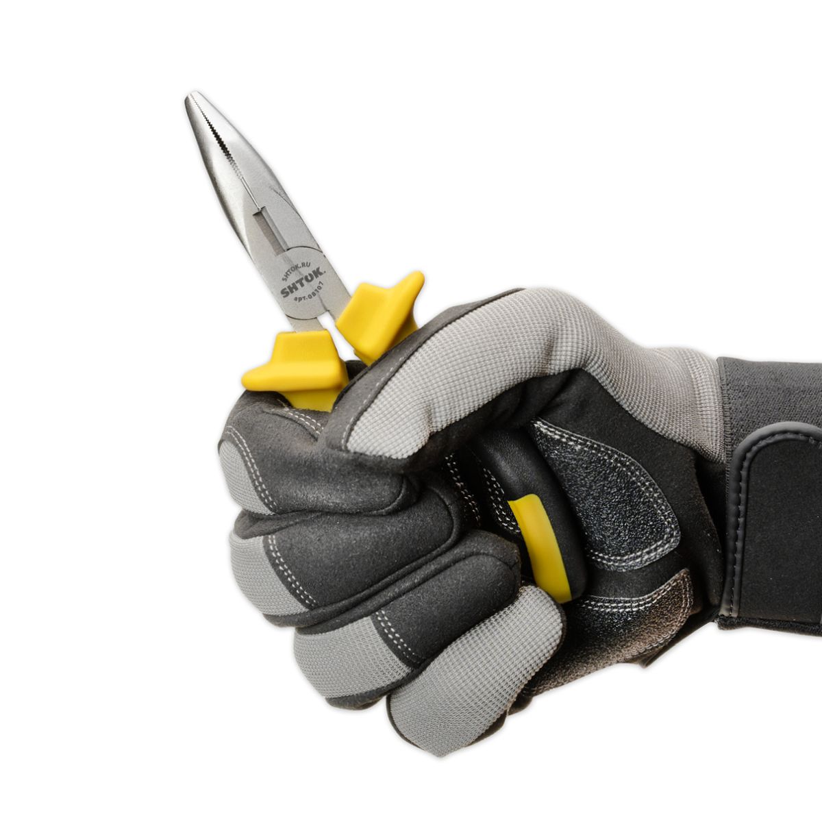 Диэлектрические изогнутые тонкогубцы SHTOK 1000В 160 мм 08107 предназначены для работ под напряжением, а также для выполнения различных работ в труднодоступных местах. Губки инструмента изогнуты под углом 40 градусов. Рукоятки тонкогубцев выполнены из двухкомпонентного пластика и оборудованы упорами, предотвращающими соскальзывание руки во время работы.