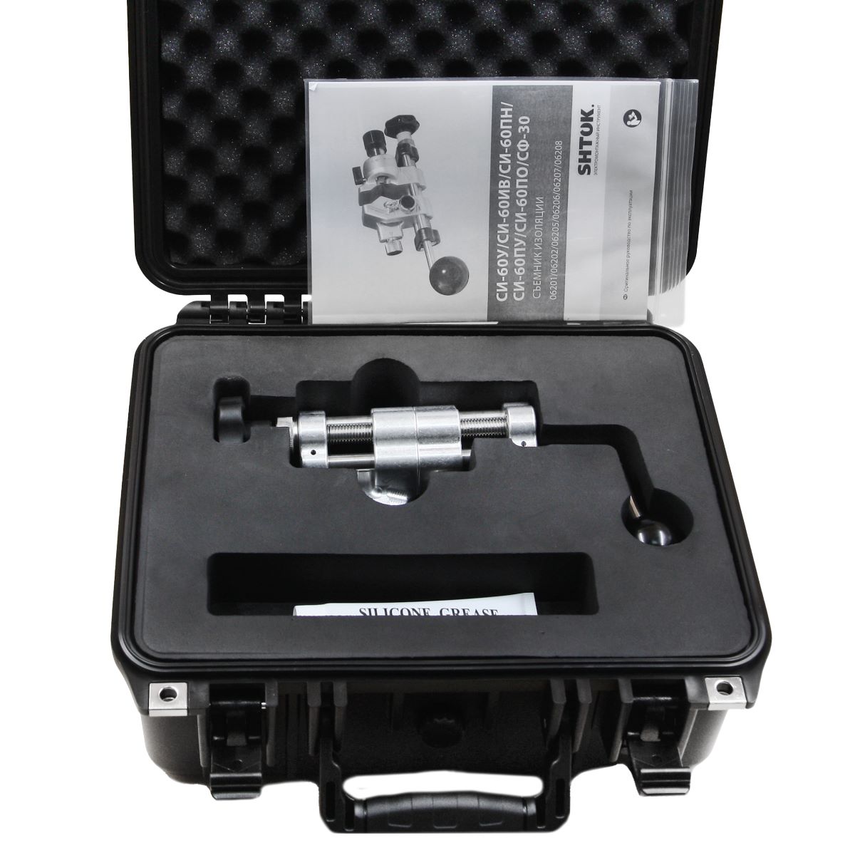 Съемник изоляции SHTOK СИ-60У 06201 разработан для снятия оболочки, изолирующего слоя из сшитого полиэтилена, а также полупроводящего слоя с кабеля, имеющего изоляцию из сшитого полиэтилена, диаметром от 17 до 60 мм (сечение 25 - 630 мм2). Инструмент не требует сборки и полностью готов к работе. По окончании работ следует лишь почистить съемник.