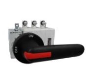 Выключатель-разъединитель 3 полюсный на номинальный ток 100 А, в котором установлена несъемная рукоятка.