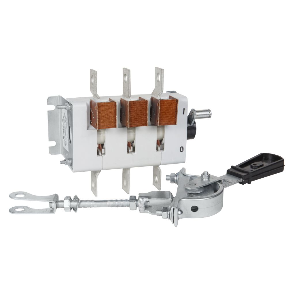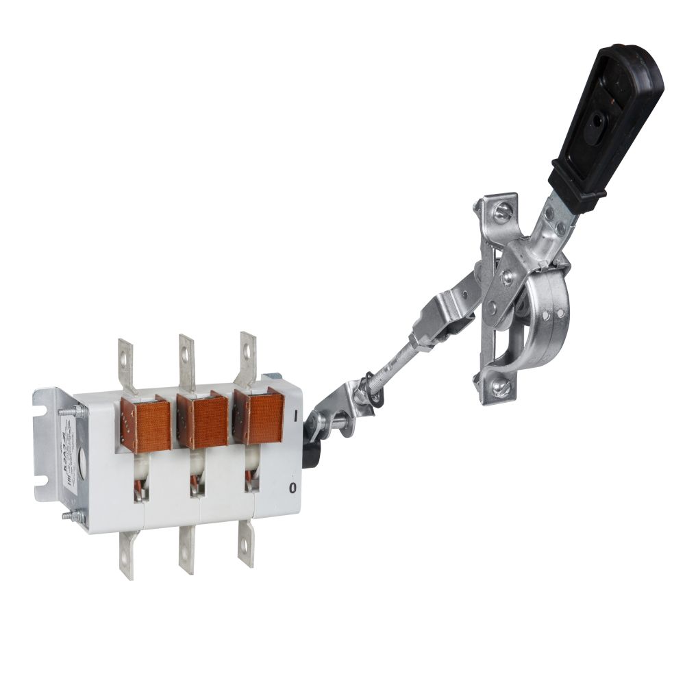 Выключатель-разъединитель 3 полюсный на номинальный ток 250 А, в котором установлена несъемная рукоятка.