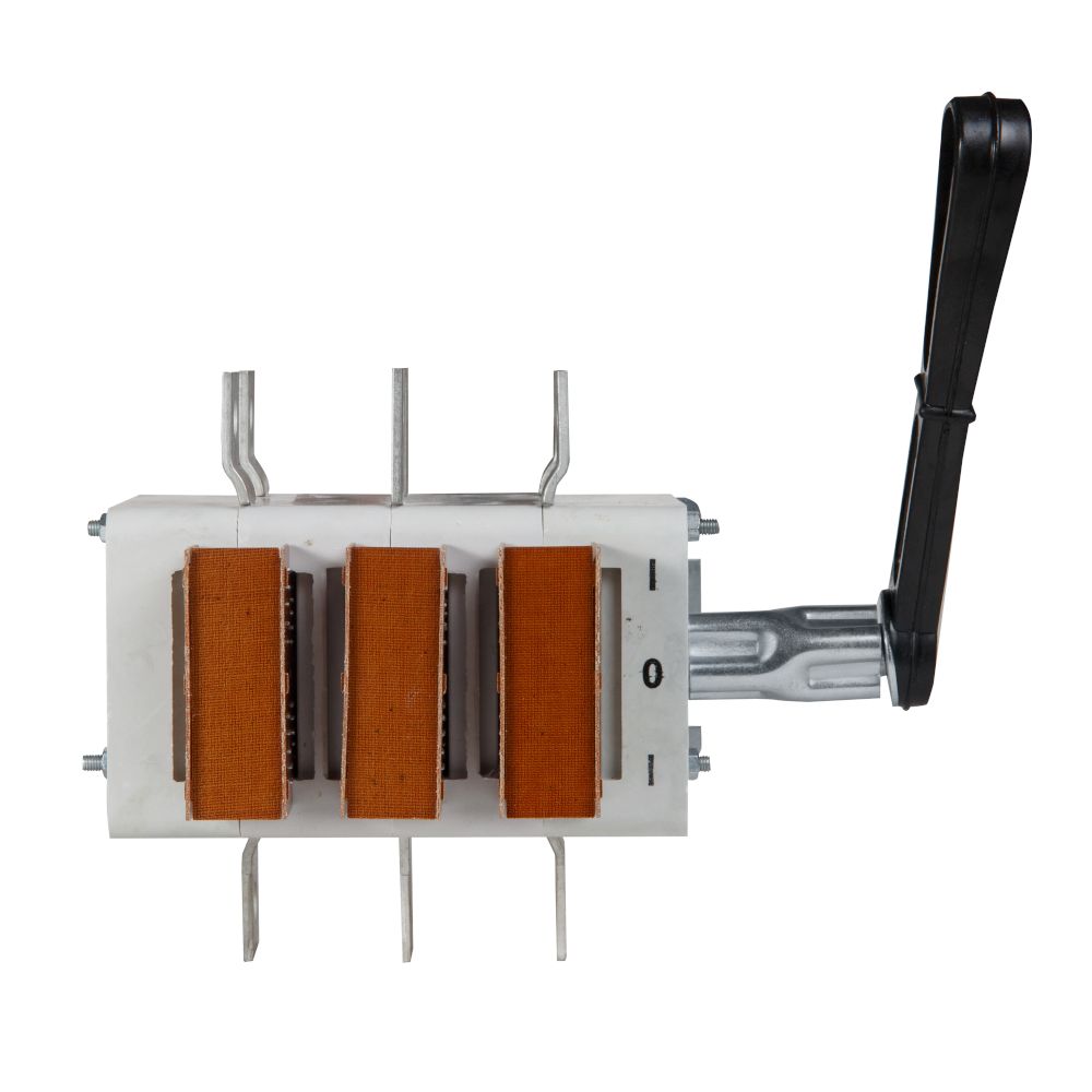 Выключатель-разъединитель 3 полюсный на номинальный ток 250 А, в котором установлена съемная рукоятка.