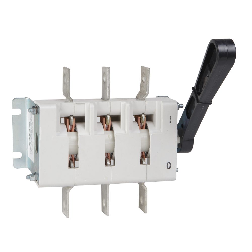 Выключатель-разъединитель 3 полюсный на номинальный ток 400 А, в котором установлена несъемная рукоятка.