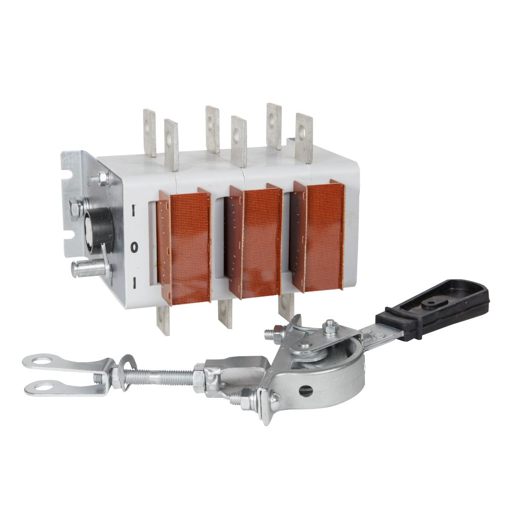 Выключатель-разъединитель 3 полюсный на номинальный ток 400 А, в котором установлена несъемная рукоятка.