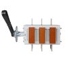 Выключатель-разъединитель 3 полюсный на номинальный ток 400 А, в котором установлена съемная рукоятка.