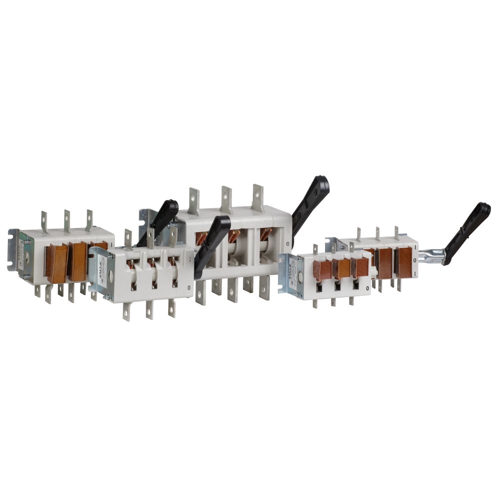 Выключатель-разъединитель 3 полюсный на номинальный ток 630 А, в котором установлена несъемная рукоятка.