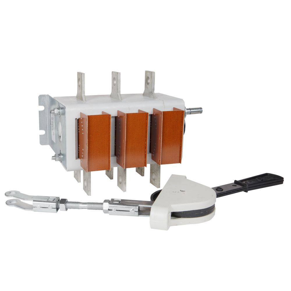 Выключатель-разъединитель 3 полюсный на номинальный ток 630 А, в котором установлена несъемная рукоятка.