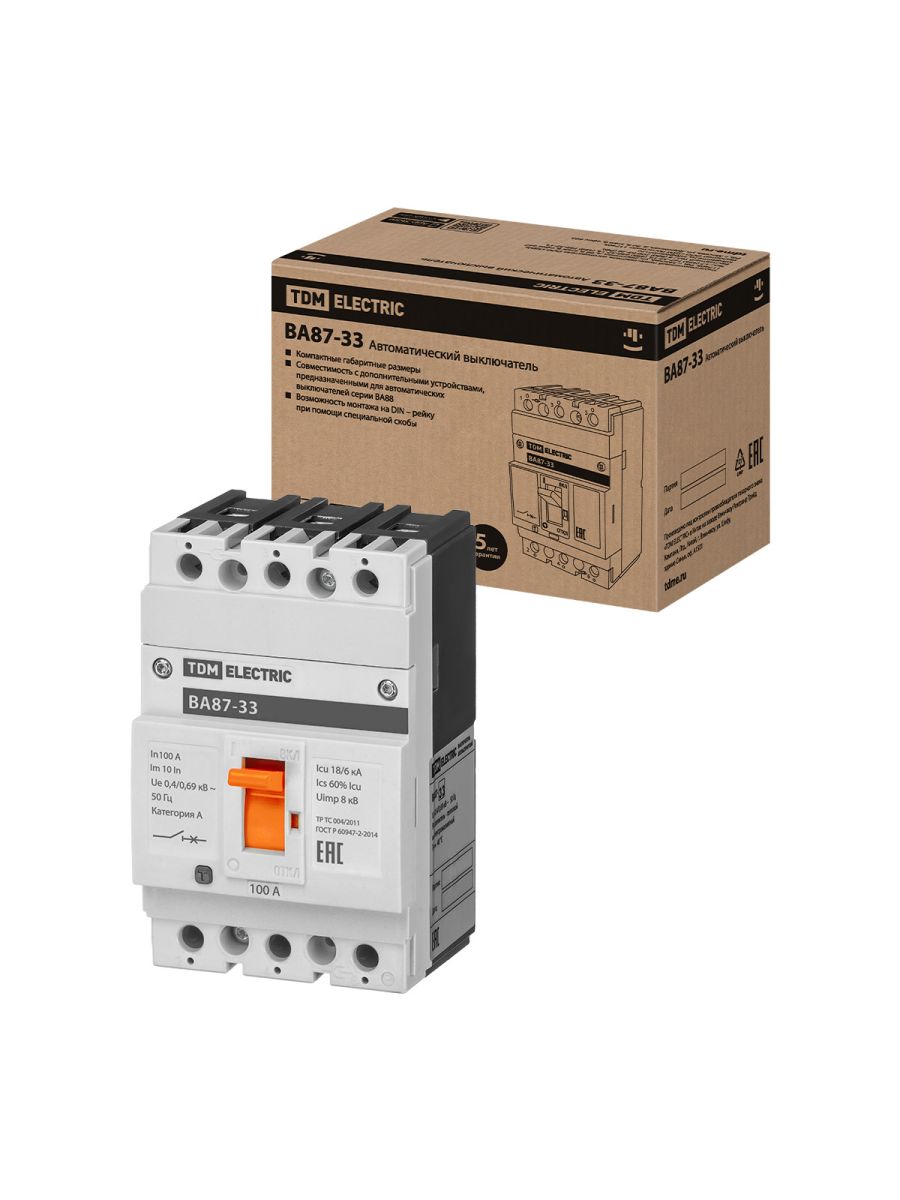 Читать все статьиАвтоматический выключатель ВА87-33 3Р 100А 18кА TDM