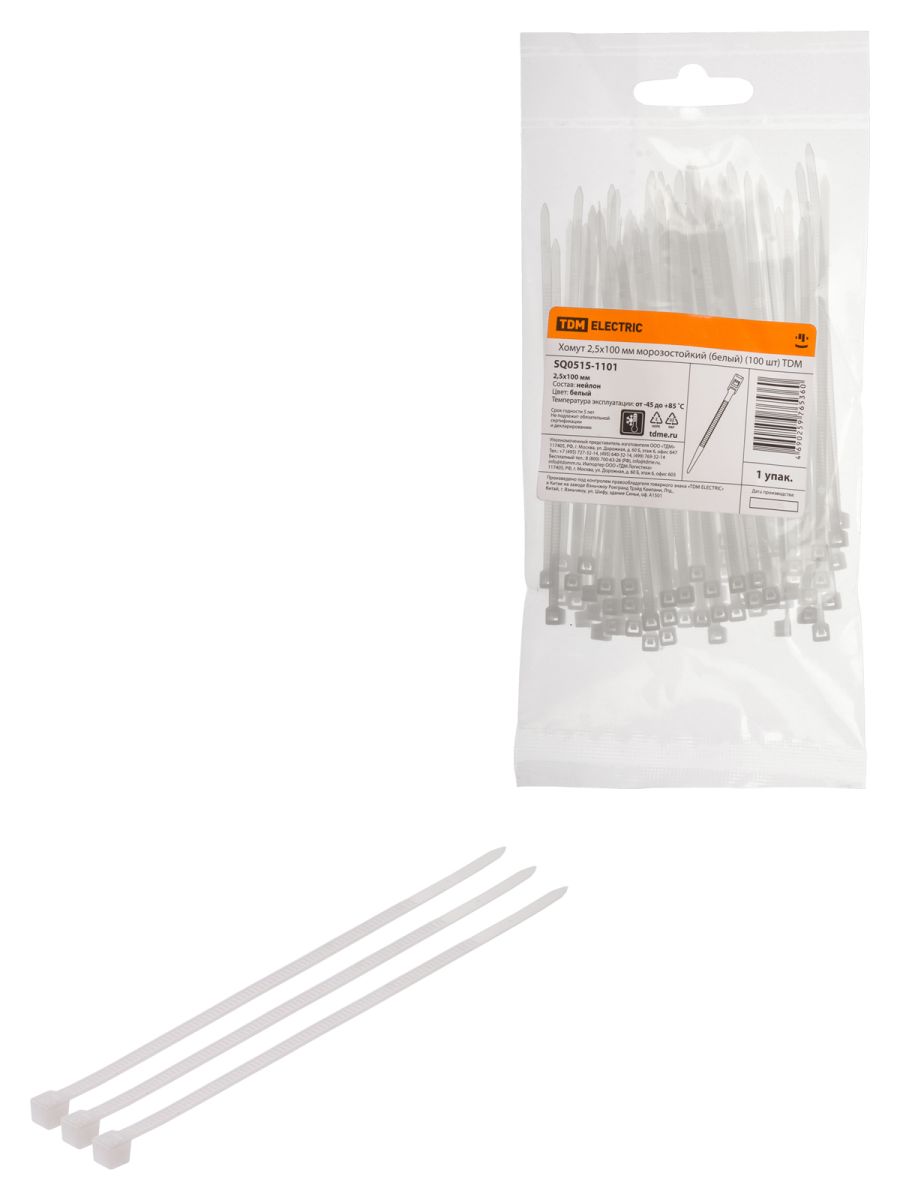 Хомут 2,5х100 мм морозостойкий (белый) (100 шт) TDM