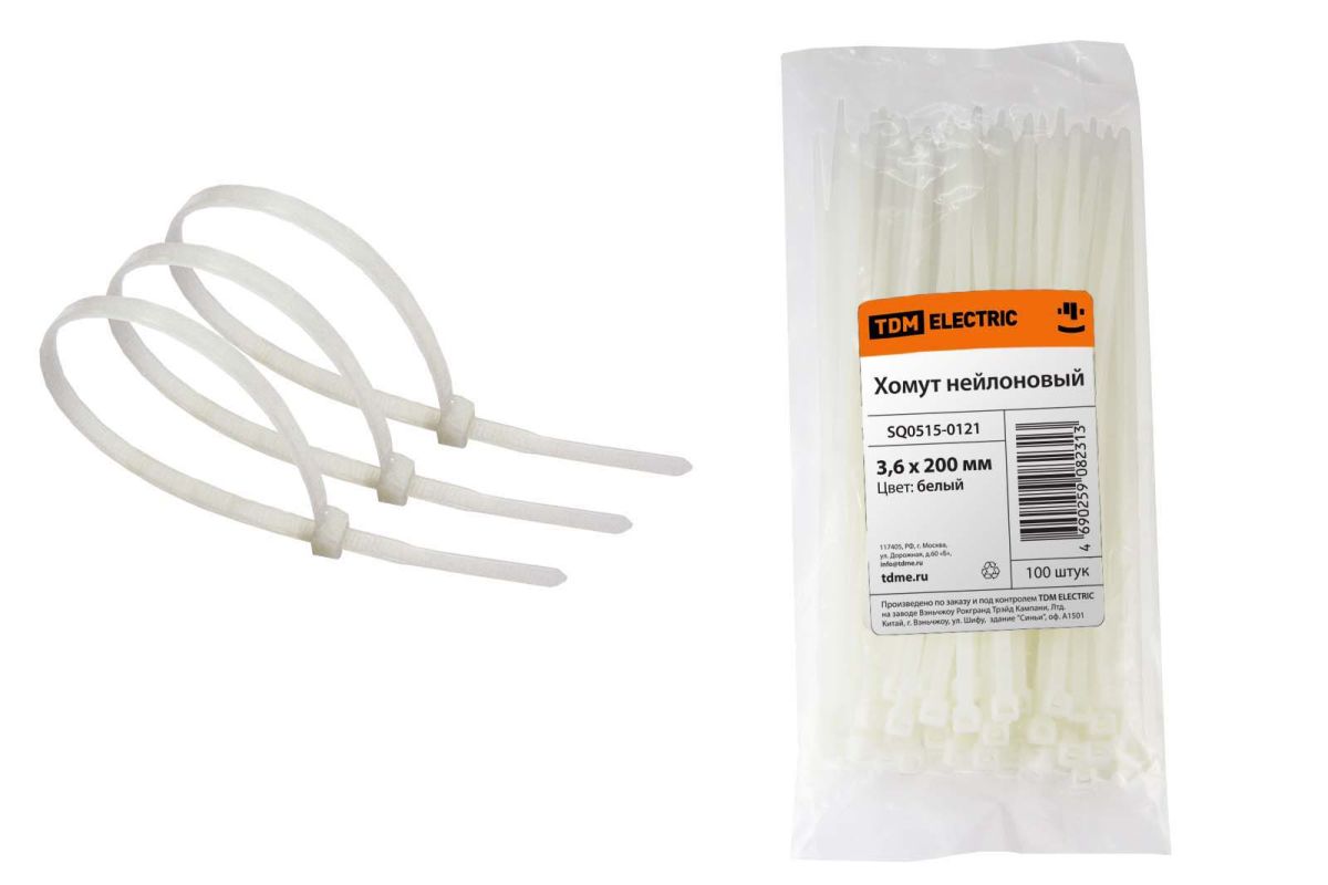 Читать все статьиХомут 3,6х200мм нейлон (белый) (100шт) TDM