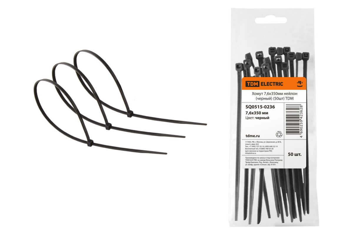 Читать все статьиХомут 7,6х350мм нейлон (черный) (50шт) TDM