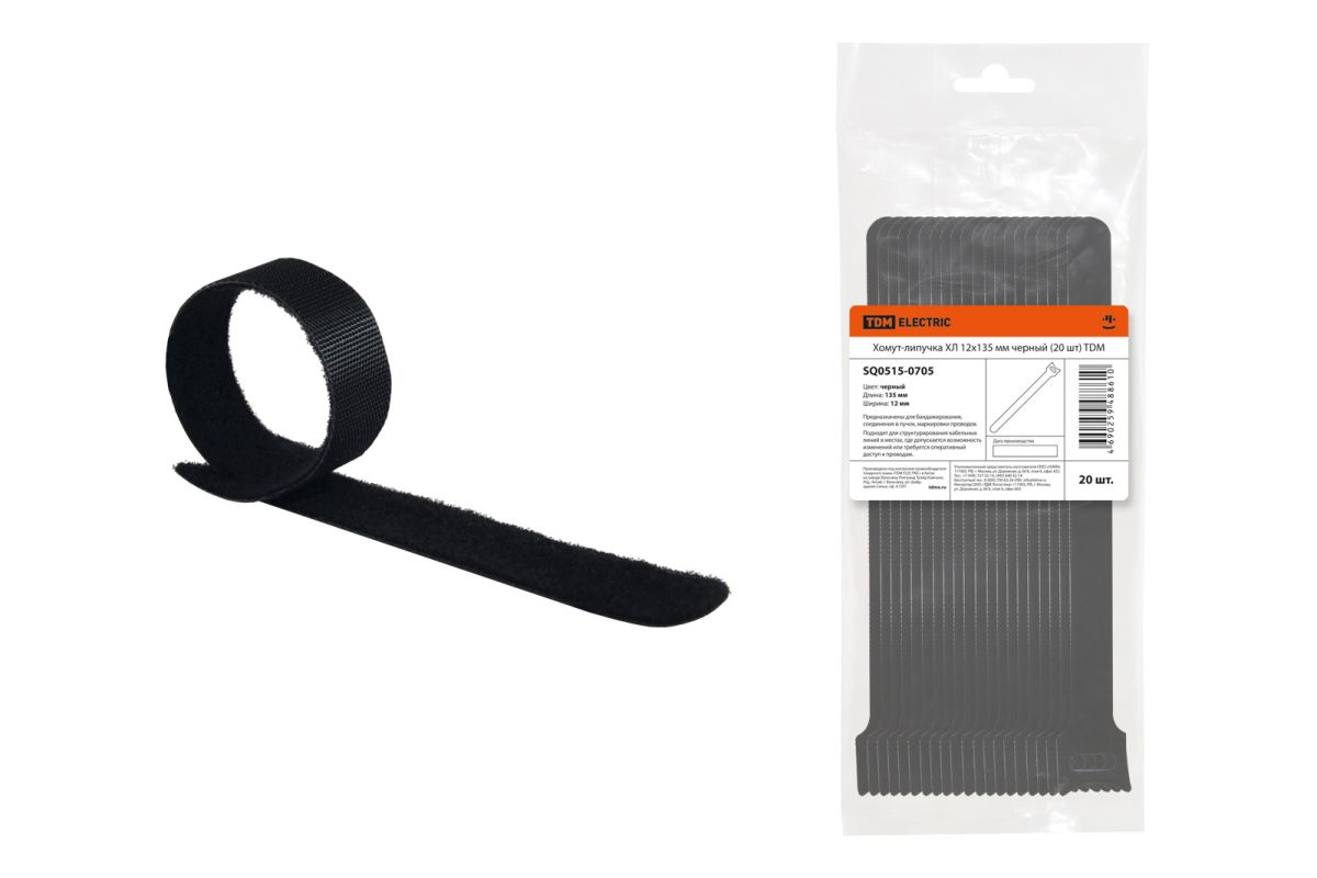 Хомут-липучка ХЛ 12х135 мм черный (20 шт) TDM