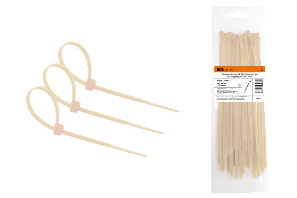 Каталог / ООО «ТДМ» / Товары TDM / 05-1 Монтажные изделия / 05.15.08 Хомуты нейлоновые "ЭКО" (сосна)