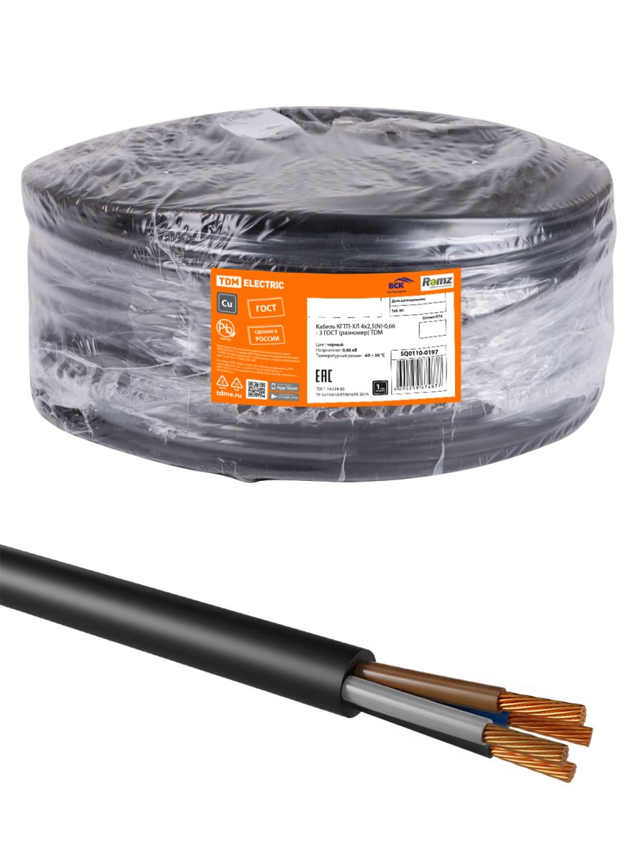Кабель КГТП-ХЛ 4х2,5(N)-0,66 - 3 ГОСТ (разномер) TDM