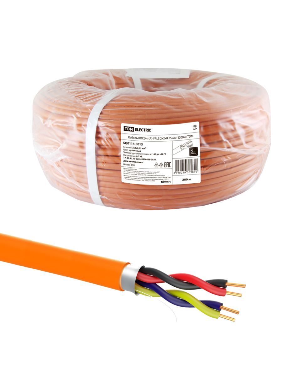 Читать все статьиКабель КПСЭнг(А)-FRLS 2х2х0,75 мм² (200м) TDM