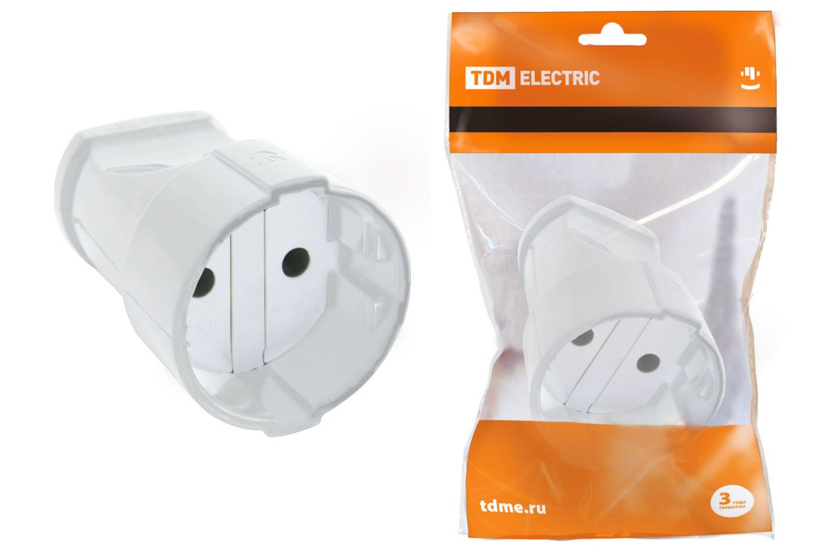 Читать все статьиКабельная розетка 2П б/з 10А 250B белая TDM