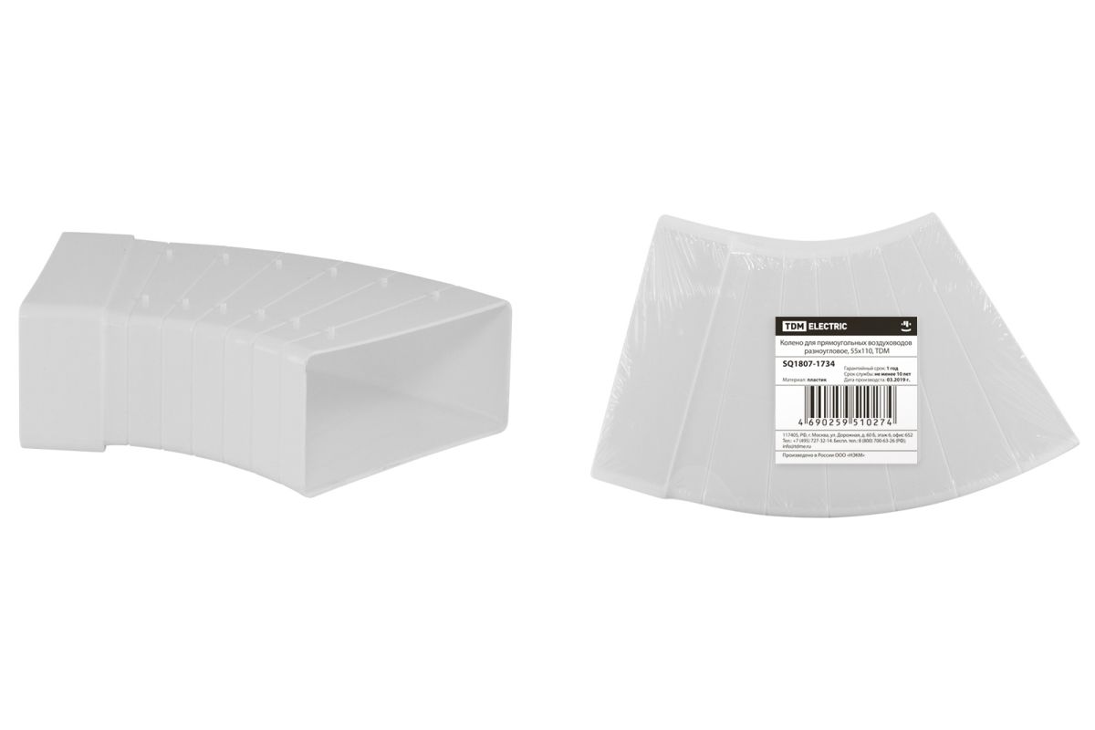 Колено для прямоугольных воздуховодов разноугловое, 55х110, TDM