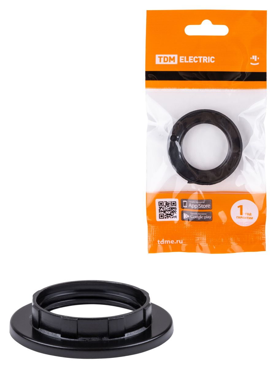 Кольцо для патрона Е14, термостойкий пластик, черный, TDM