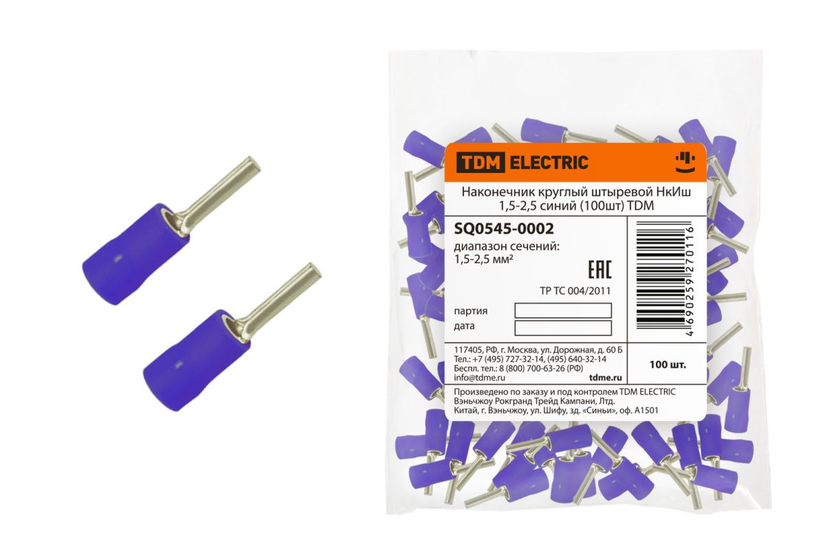 Читать все статьиНаконечник круглый штыревой НкИш 1,5-2,5 синий (100шт) TDM