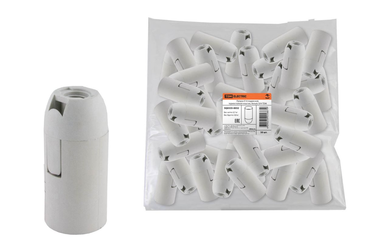 Читать все статьиПатрон Е14 подвесной, термостойкий пластик, белый, Б/Н TDM