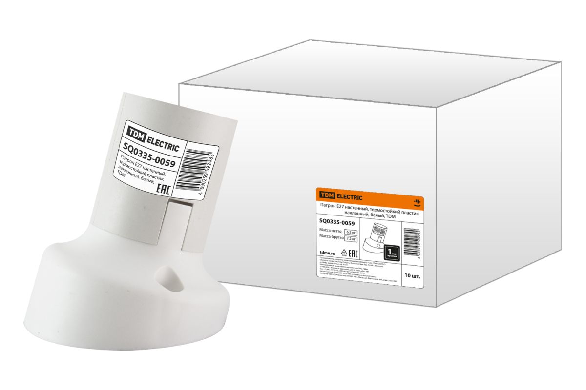 Читать все статьиПатрон Е27 настенный, термостойкий пластик, наклонный, белый, TDM
