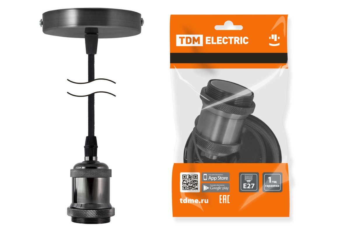 Патрон Е27 с подвесом 1 м, металлический «Лофт», черный TDM