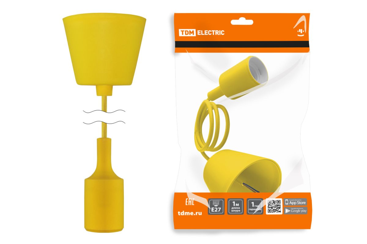 Патрон пластиковый Е27 с подвесом 1 м, желтый TDM