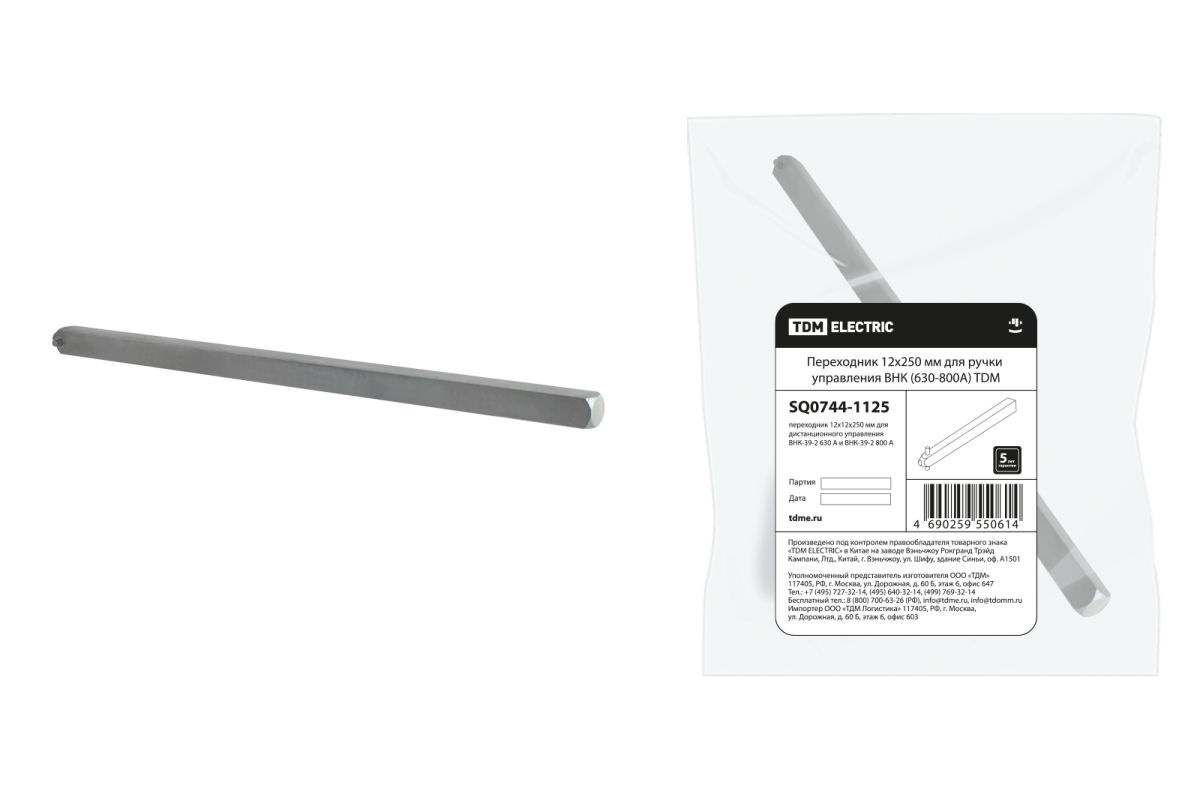 Читать все статьиПереходник 12х250мм для ручки управления ВНК (630-800А) TDM
