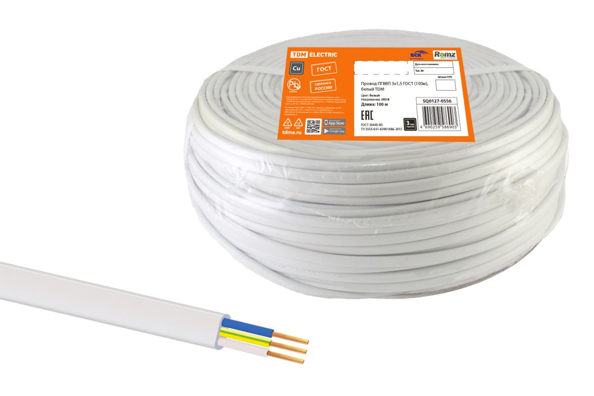 Провод ПГВВП 3х1,5 ГОСТ (100м), белый TDM