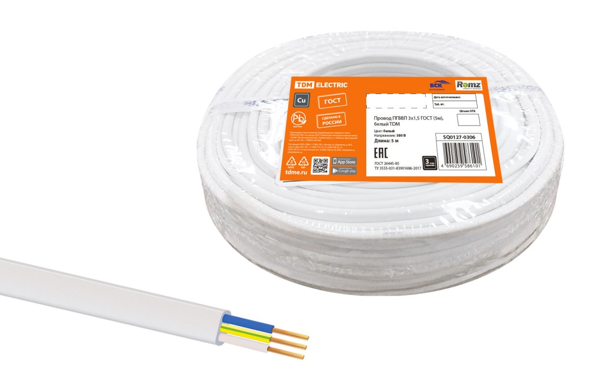 Каталог / ООО «ТДМ» / Товары TDM / 01-1 Кабельно-проводниковая продукция / 01.27 Провода бытовые ПВВП, ПГВВП / 01.27.09 Провода ПГВВП по 5м