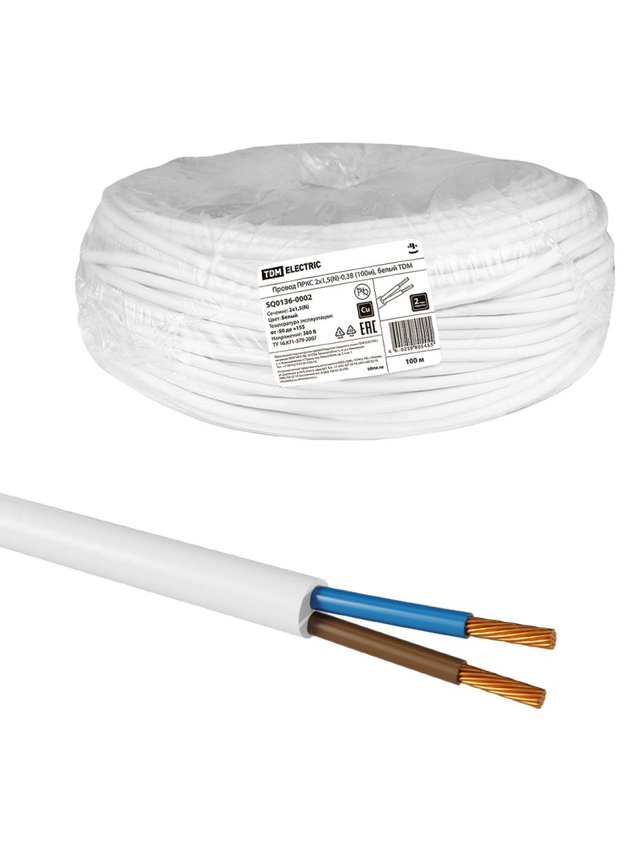 Провод ПРКС 2х1,5(N)-0,38 (100м), белый TDM