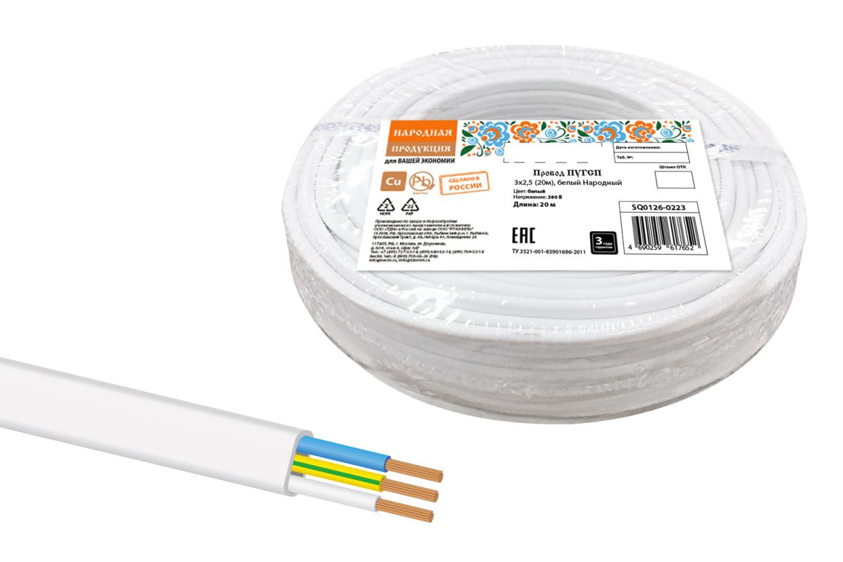 Провод ПУГСП 3х2,5 (20м), белый Народный