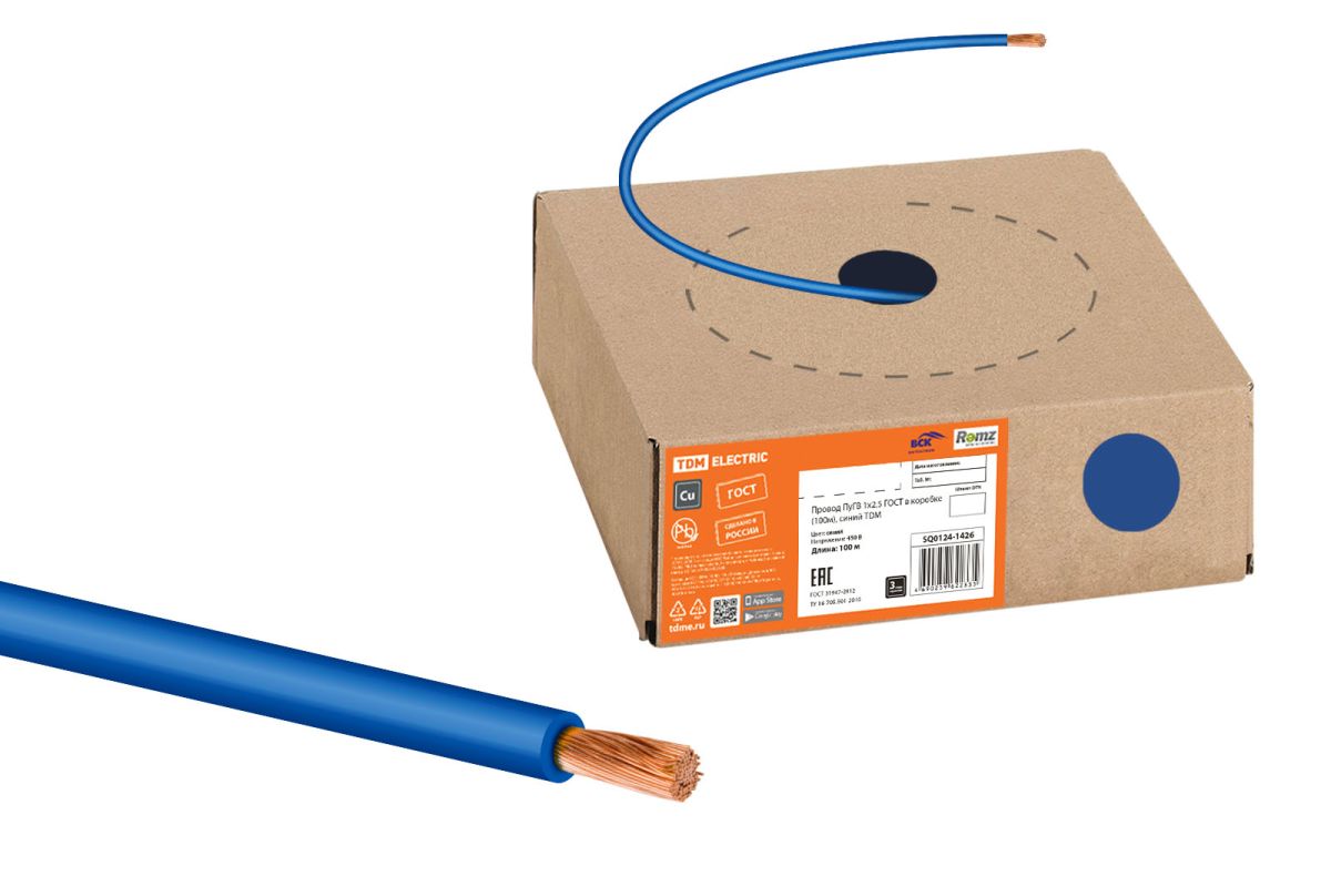 Читать все статьиПровод ПуГВ 1х2,5 ГОСТ в коробке (100м), синий TDM