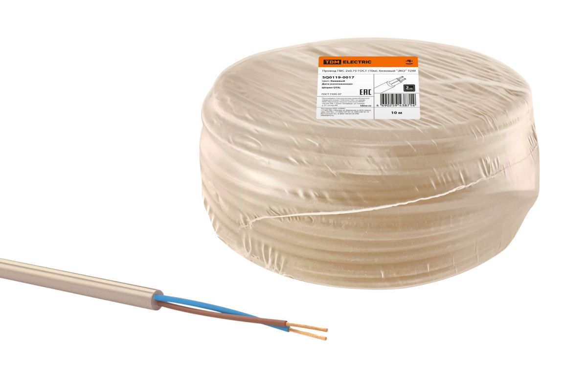 Провод ПВС 2х0,75 ГОСТ (10м), бежевый «ЭКО» TDM
