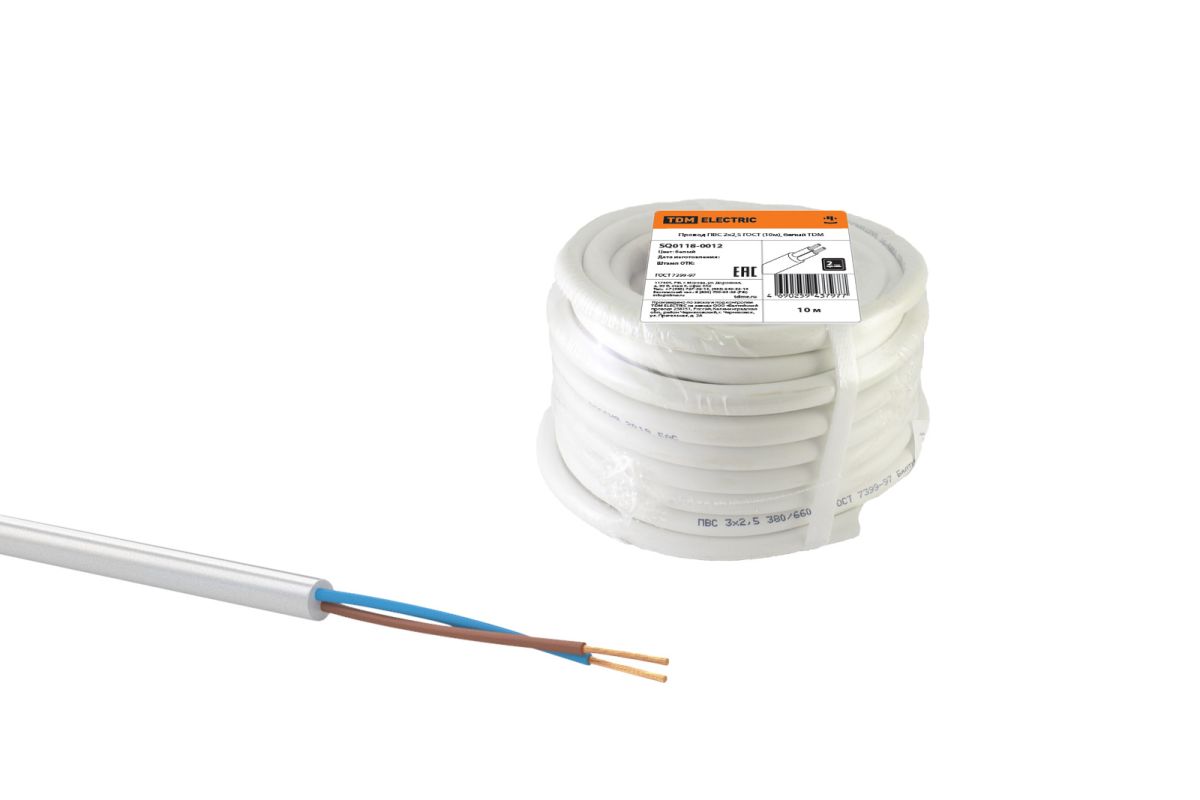 Читать все статьиПровод ПВС 2х2,5 ГОСТ (10м), белый TDM