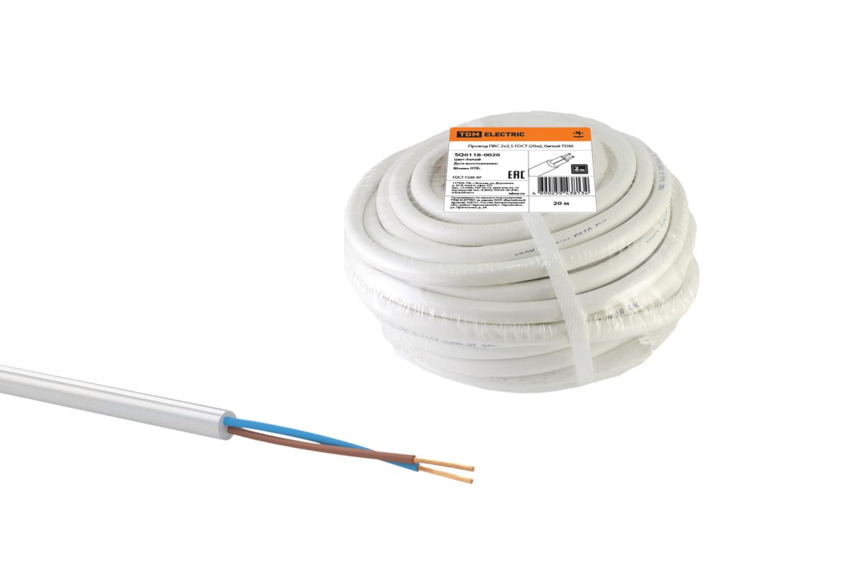 Читать все статьиПровод ПВС 2х2,5 ГОСТ (20м), белый TDM