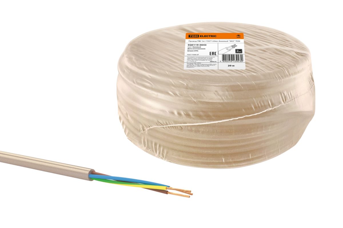 Провод ПВС 3х1 ГОСТ (20м), бежевый «ЭКО» TDM