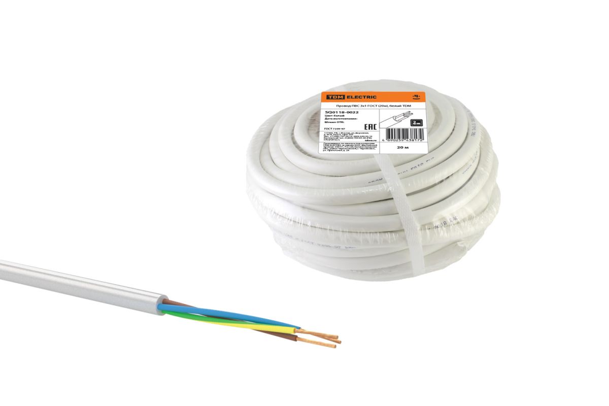 Читать все статьиПровод ПВС 3х1 ГОСТ (20м), белый TDM