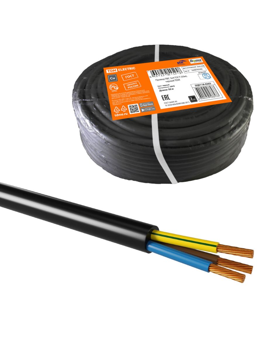 Читать все статьиПровод ПВС 3х4 ГОСТ (50м), черный TDM