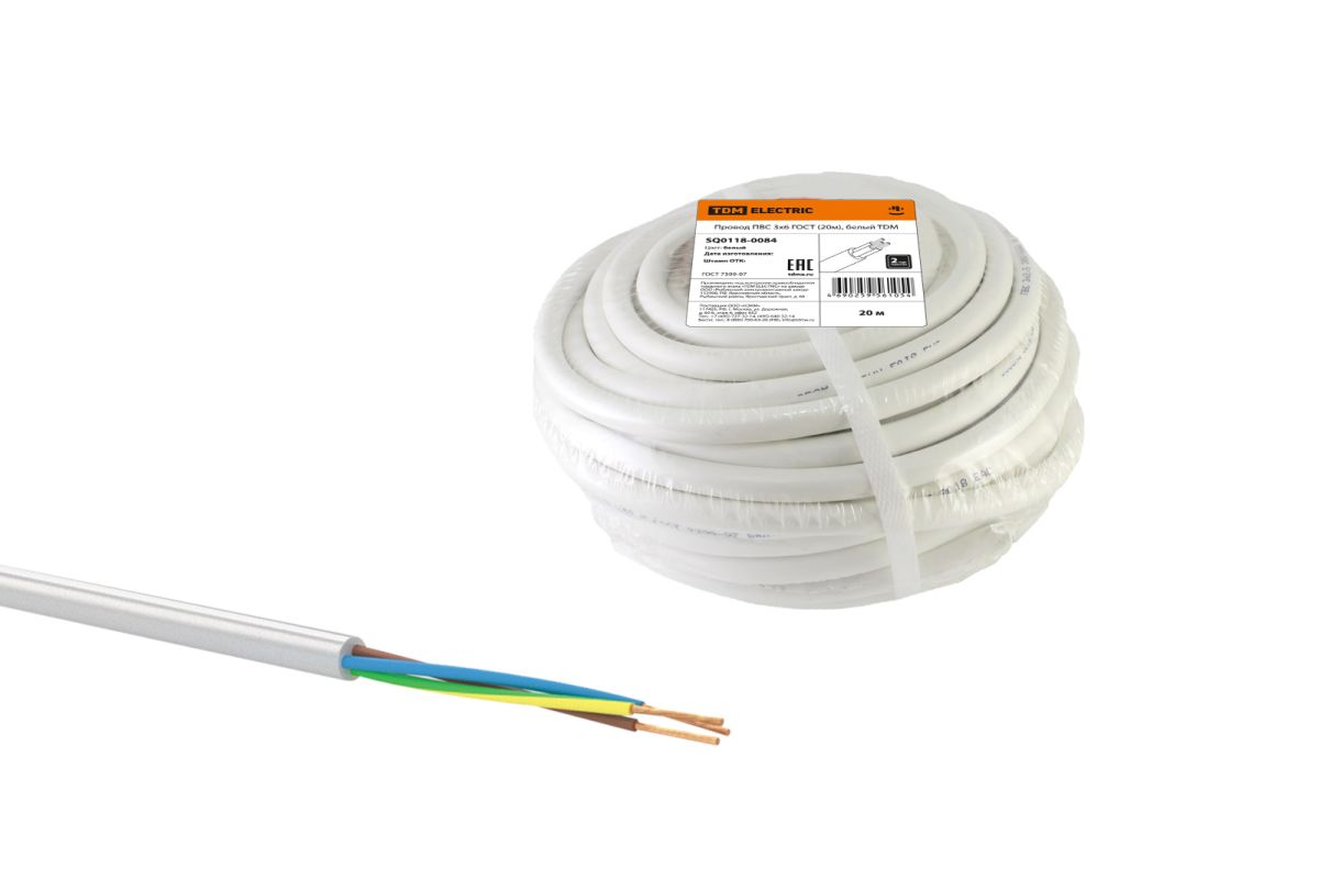 Читать все статьиПровод ПВС 3х6 ГОСТ (20м), белый TDM