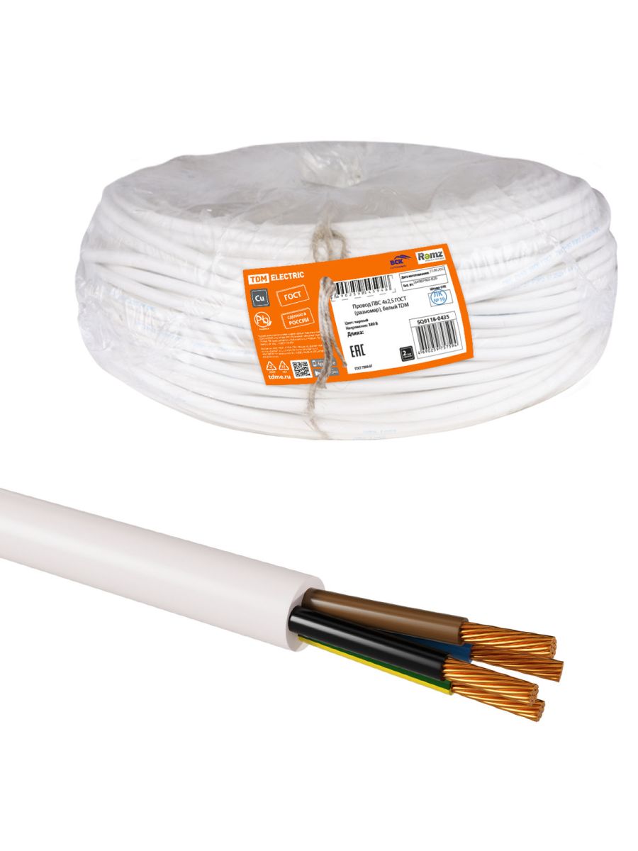 Провод ПВС 4х2,5 ГОСТ (разномер), белый TDM