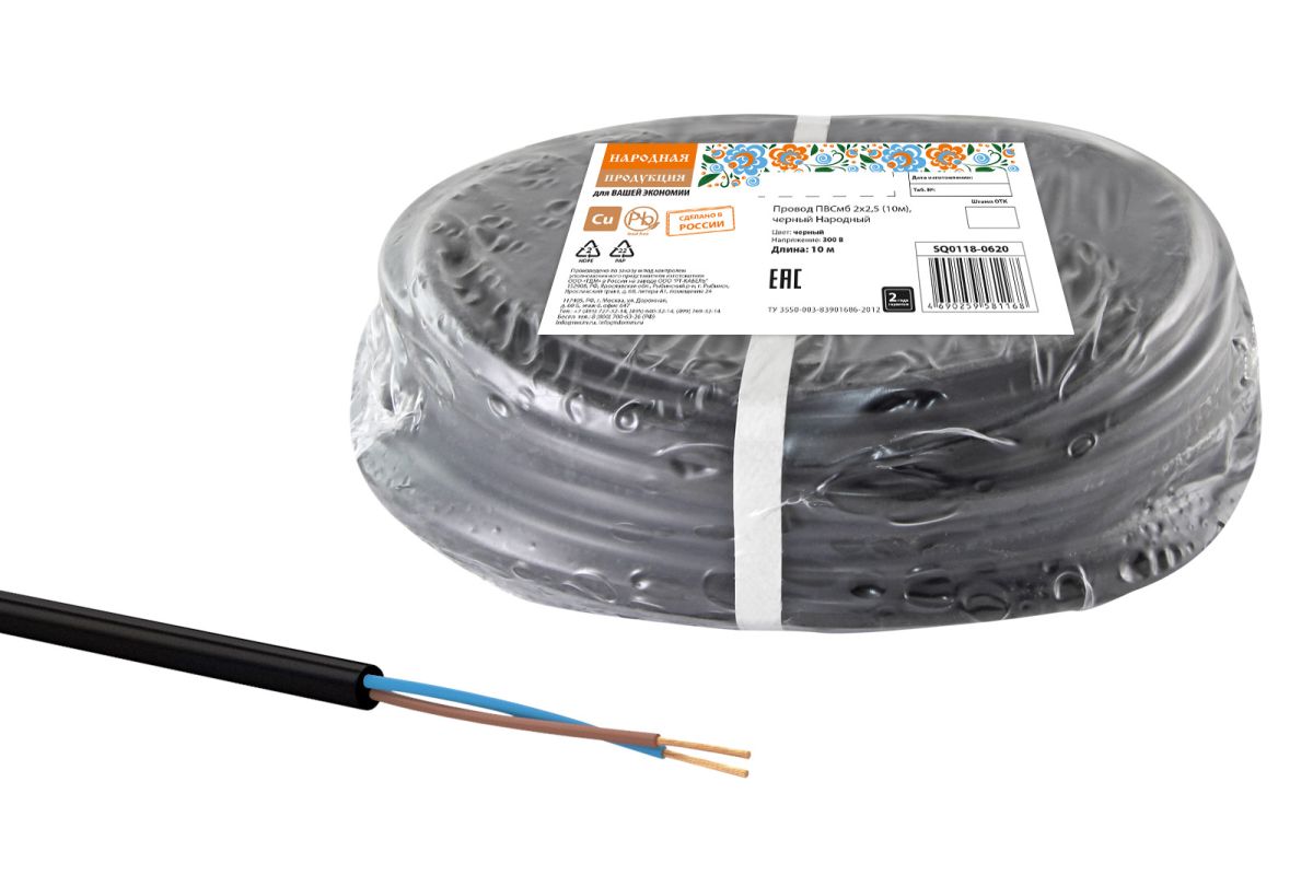 Провод ПВСмб 2х2,5 (10м), черный Народный