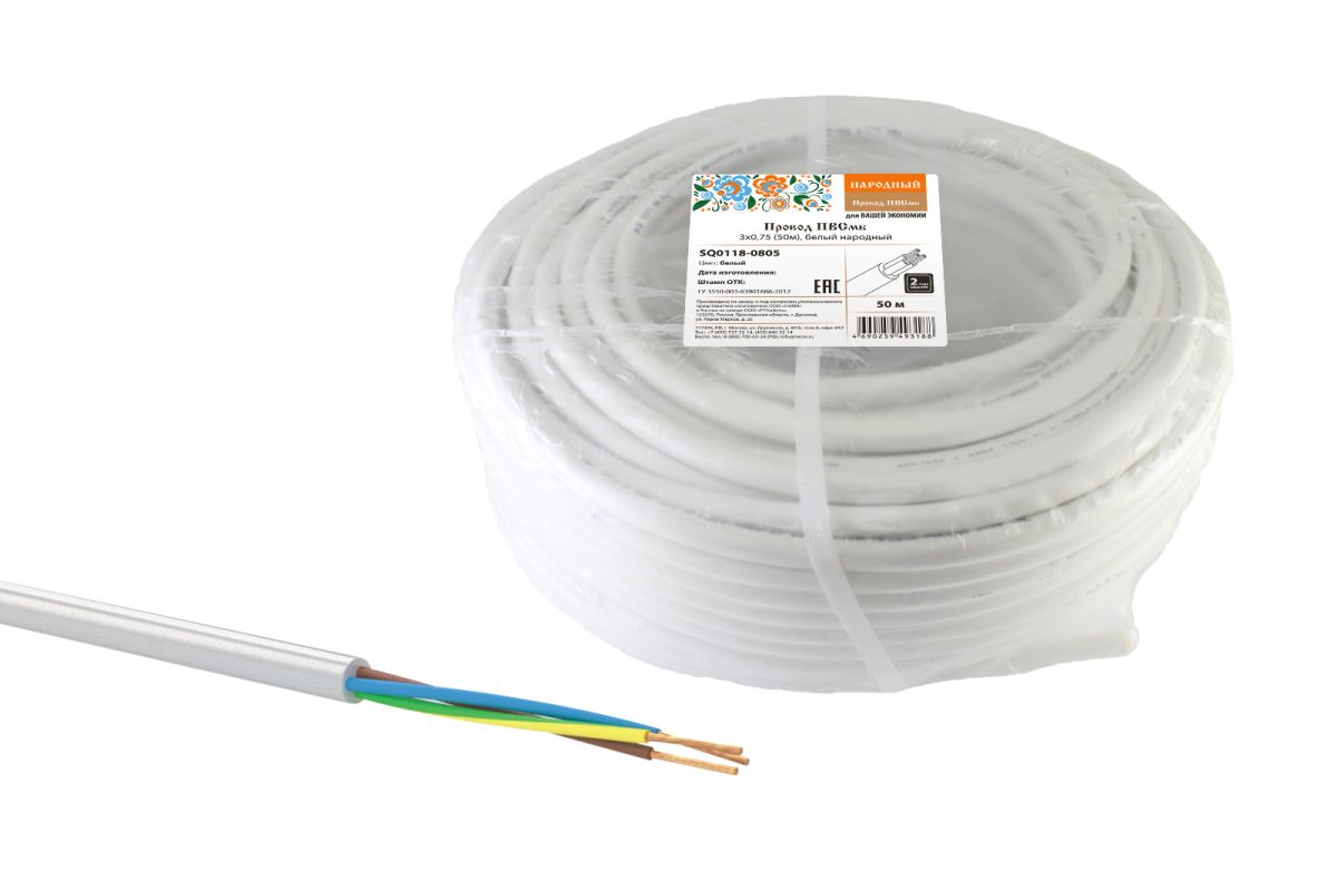 Провод ПВСмб 3х0,75 (50м), белый Народный