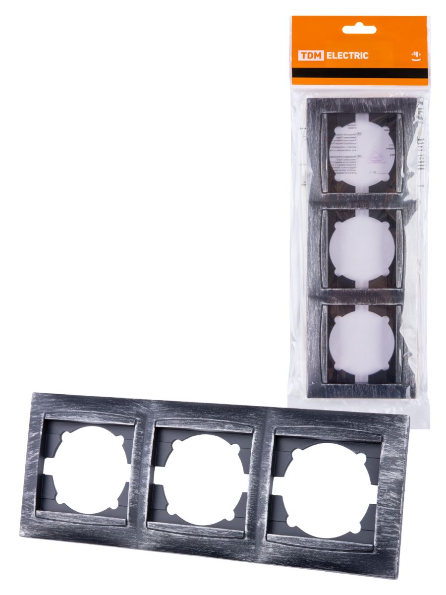 Рамка 3-х постовая горизонтальная старинное серебро «Лама» TDM