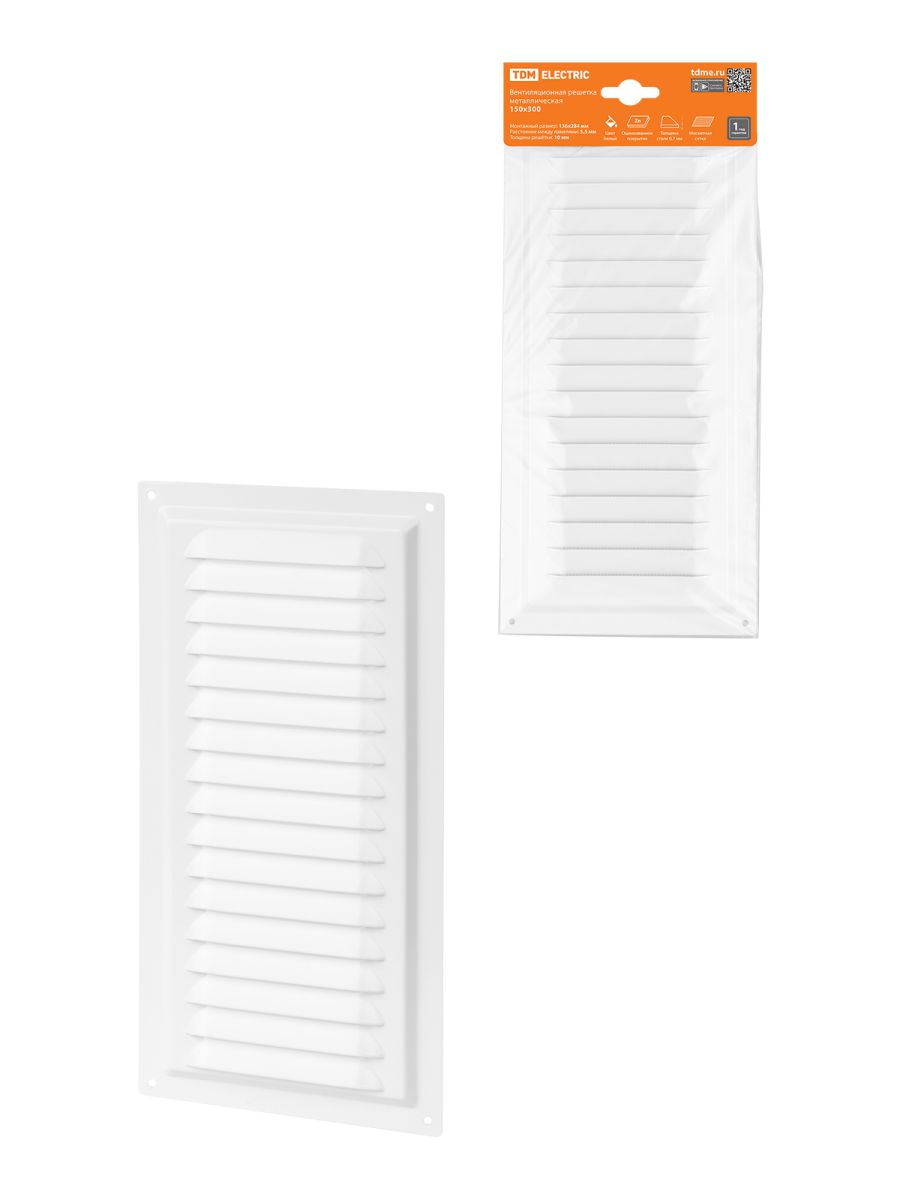 Решетка металл. 150х300, белая, с покрытием полимерной эмалью, TDM