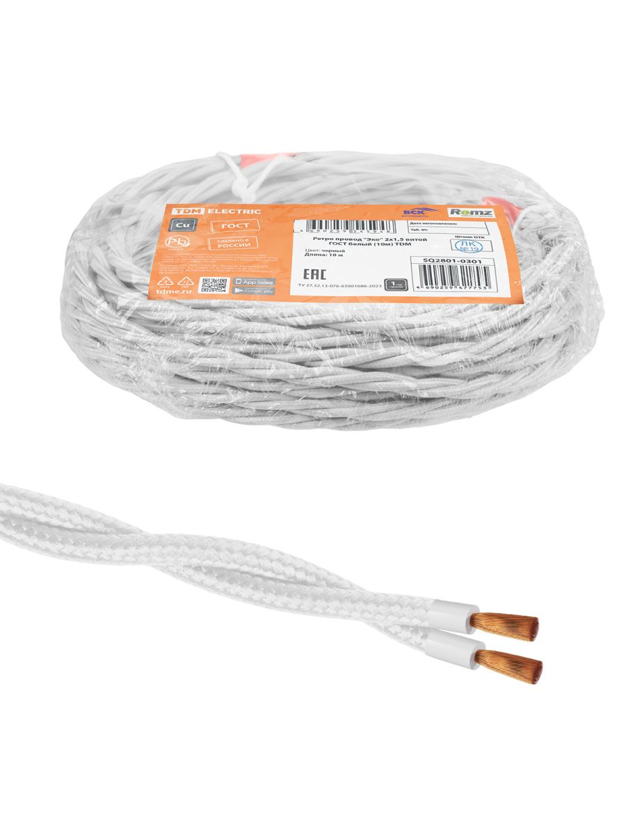 Ретро провод «Эко» 2х1,5 витой ГОСТ белый (10м) TDM